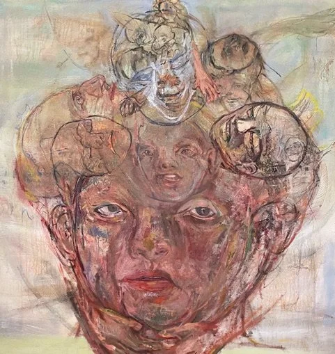 Drawing on personal history, political trauma, and mythic storytelling, Glantzman’s paintings and works on paper act as psychological excavations. Faces multiply, fracture, and dissolve, revealing the instability of identity and the endurance of memory. Themes of war, grief, ancestry, and the inner life recur across her oeuvre, yet always with a spirit of reinvention and painterly urgency. Decades-old paintings have been revisited, manifesting a debate between herself as an artist of today and her younger self, allowing her to see both the aesthetic shifts as well as the profound dedication to her way of making. Her totemic female power figures may or may not be seen as self portraits but they share space in her work with women from. Art history like Rembrandt’s Bathsheba with classic television detective Joe Columbo.
